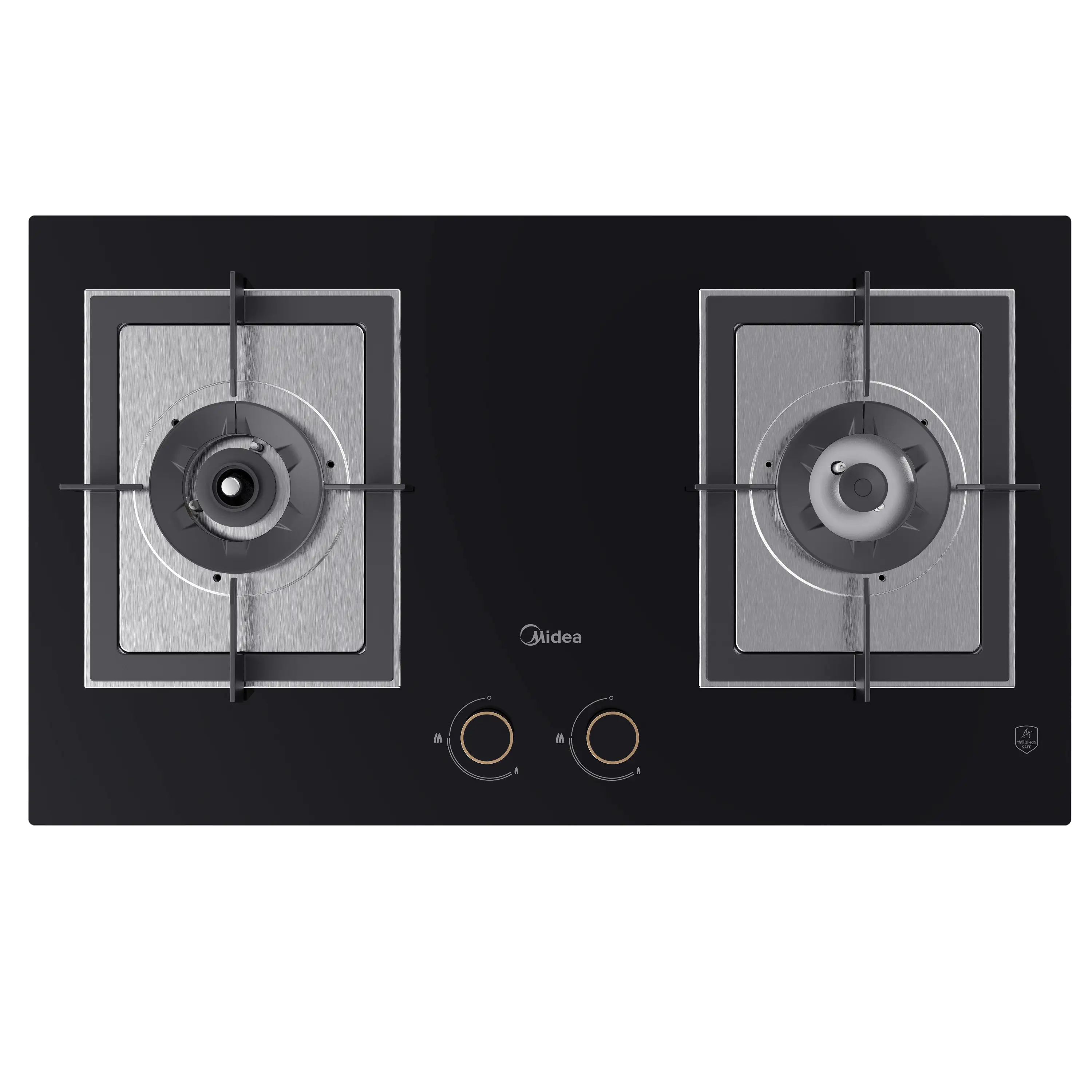 4.5Kw大火力,防干烧保护自动熄火功能,爆炒不糊锅,稳固防滑方形锅支架,金属色旋钮装饰条,九档火力精控