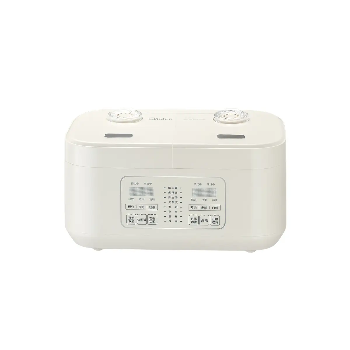 1、双煲同煮双倍飞快,饭菜随心配,每道美食不串味2、双重飓风对流阀,加速破泡,防溢快煮,快煮口感也香甜3、10大美食功能左右随意切换,双煲同煮随心配
