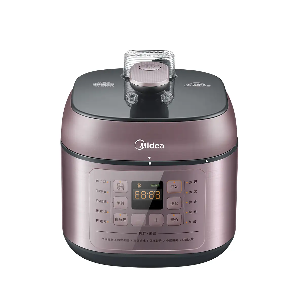 小体积大容量; 界面:大界面+多功能;叠放双胆; 体验:上盖可拆易清洗、按键快速排气;提鲜去腥