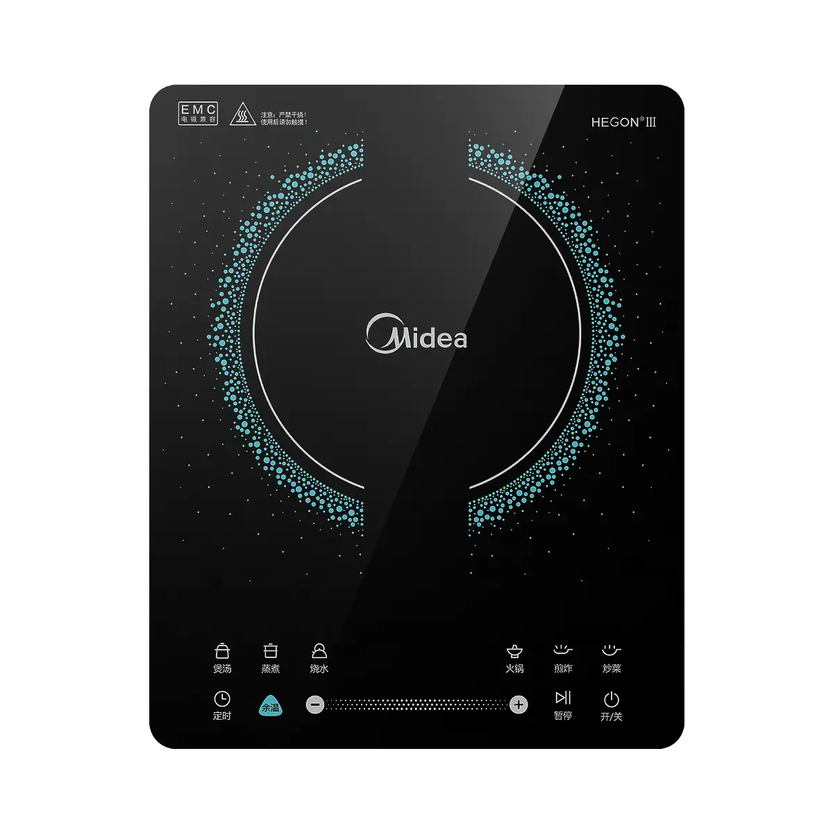 旋磁叠式大线盘(加热面大 火力均匀)、酷薄机身(时尚科技 薄动心弦)、滑控火力调节(操作便捷 随心所控)、4D防水系统(多重防护 安全可靠)