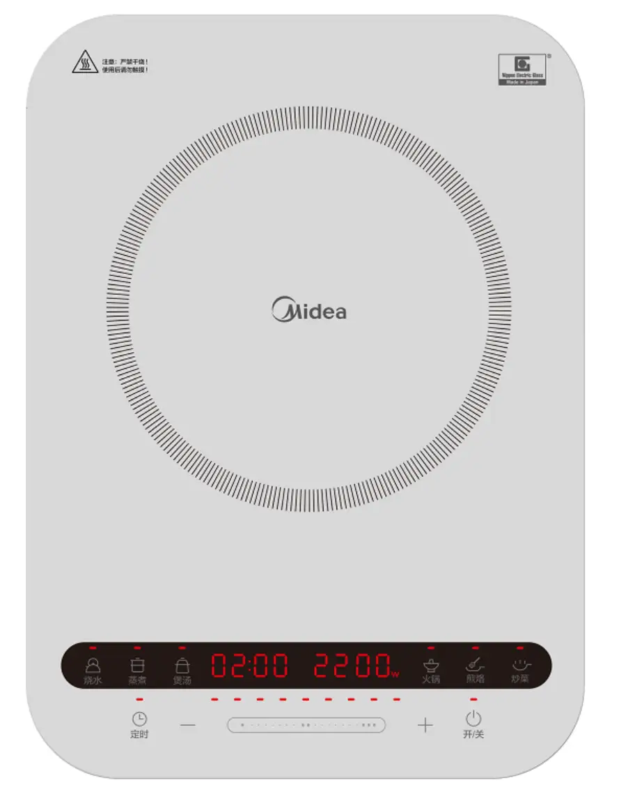 恒匀火持续加热;日本进口NEG微晶面板;时尚炫彩,简约设计;9档火力,指尖滑控;隐式涡轮散热;
