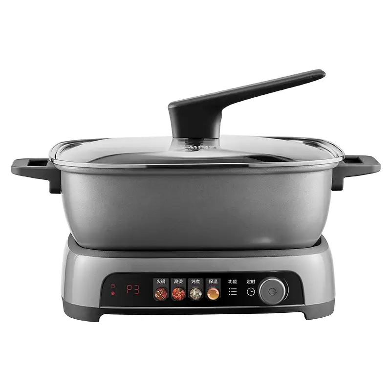 IH2200W猛火,3分钟速沸170毫米线圈盘,加热不易糊恒匀火加热技术,小火持续沸腾不断火6.6升大容量,5-6人放肆涮10厘米加深锅体,涮烫不外溅