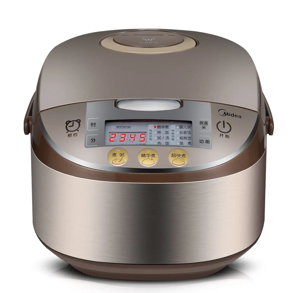 1、24小时预约功能2、一键煮饭功能,简化繁琐步骤。3、2.0mm黄晶蜂窝内胆+三维立体加热,聚热又均匀。5、8大实用性功能配置。