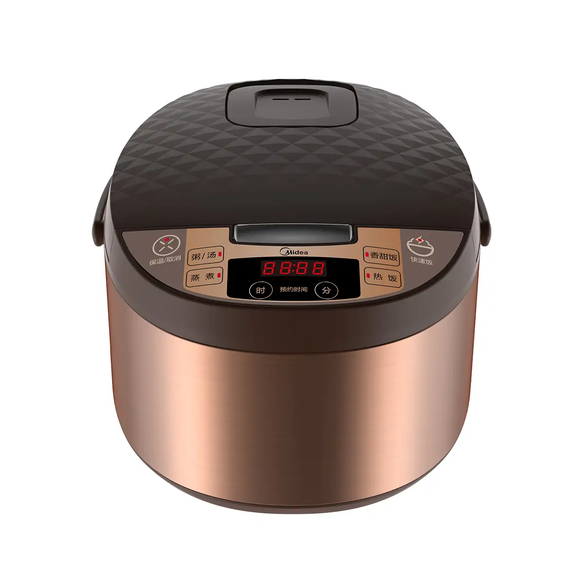 钻石纹理上盖,彰显精致工艺;蜂窝聚能釜,受热均匀,米饭不粘锅;一键通,操作简单、使用方便;24小时预约,美味随心享、不等待