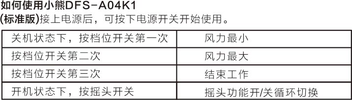 DFS-A04K1电风扇说明书下载