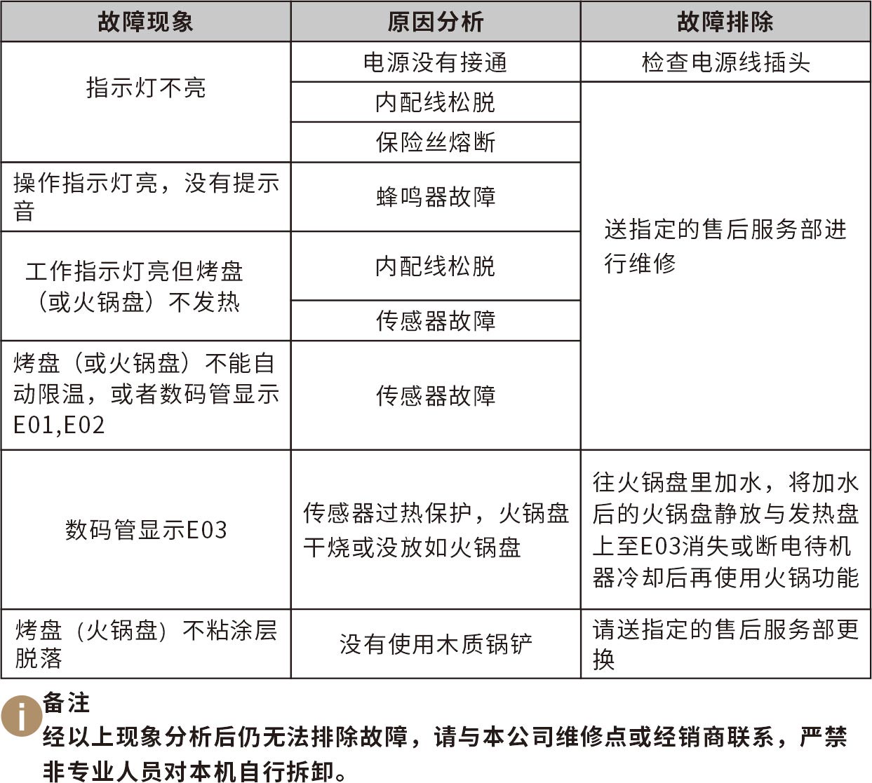 使用中若有从发热盘以外的地方冒烟或起火的现象,请用户立刻停止使用,井将产品送至经销商或特约维修处处理。