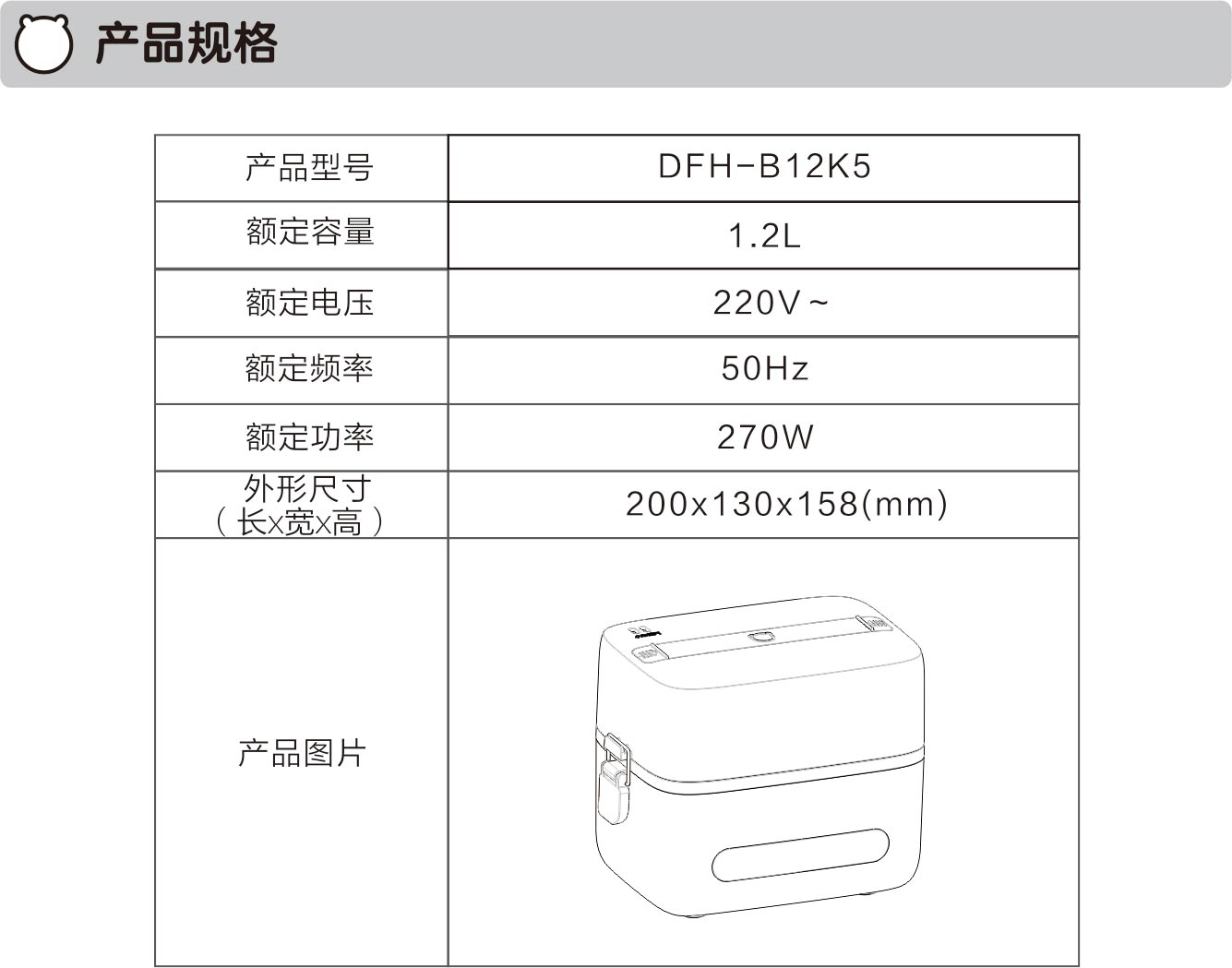 Bear小熊电器DFH-B12K5电饭盒说明书