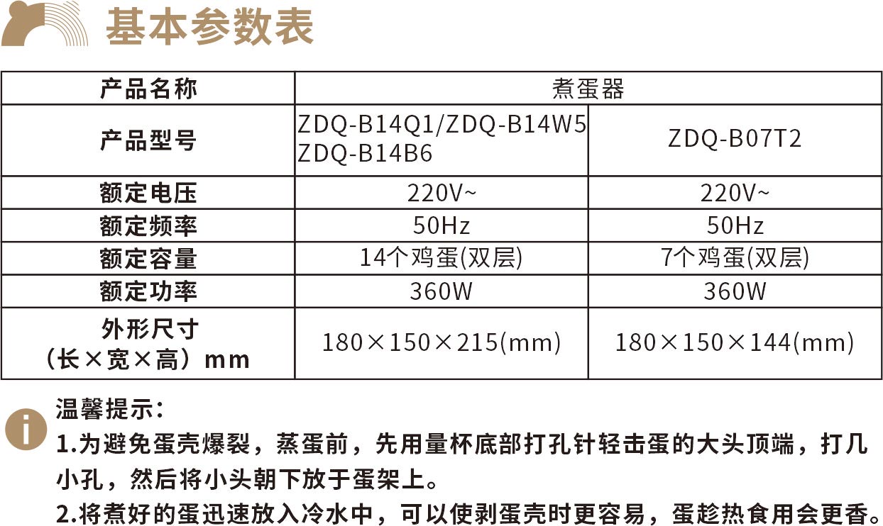 本产品是我公司自主研发的煮蛋器系列之一。外观新颖、线条流畅、造型优美,使用简单、安全可靠。使用煮蛋器蒸煮出来的蛋既保持了蛋的鲜嫩又保持了蛋的营养,是理想的营养早餐之一。拥有“小熊”煮蛋器轻轻松松就可以享受营养、美味的蛋。小巧精致单双层煮蛋器,为你蒸出花样早餐