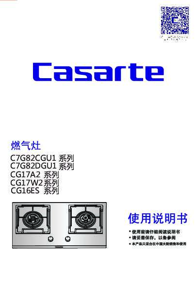 casarte卡萨帝美食家套系嵌入式燃气灶JZT-CG17A2(12T)使用说明书