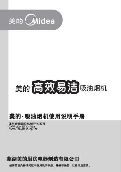Midea美的经典系列欧式(弧玻)吸油烟机CXW-180-DT102说明书