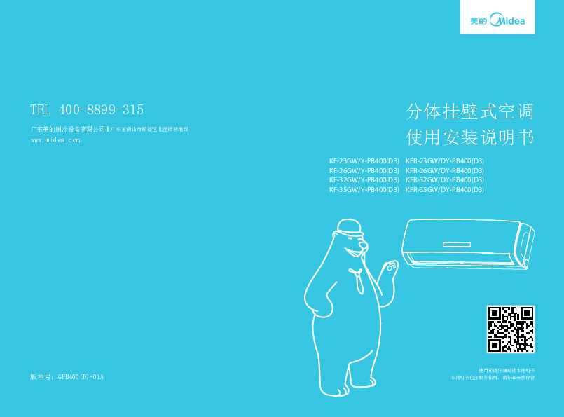 Midea美的小1匹冷慧星定速挂机KFR-23GW/DY-PB400(D3)说明书