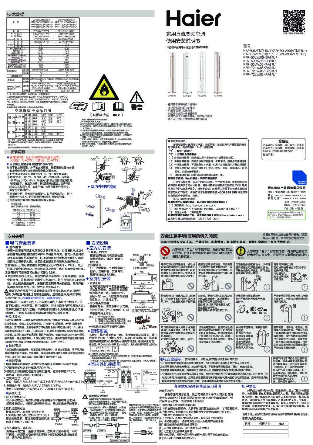 海尔KFR-72LW/06KBA81U1说明书