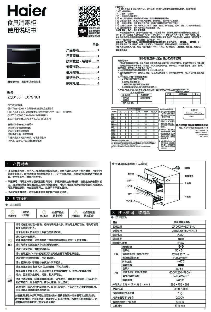 海尔ZQD100F-E07SNU1说明书