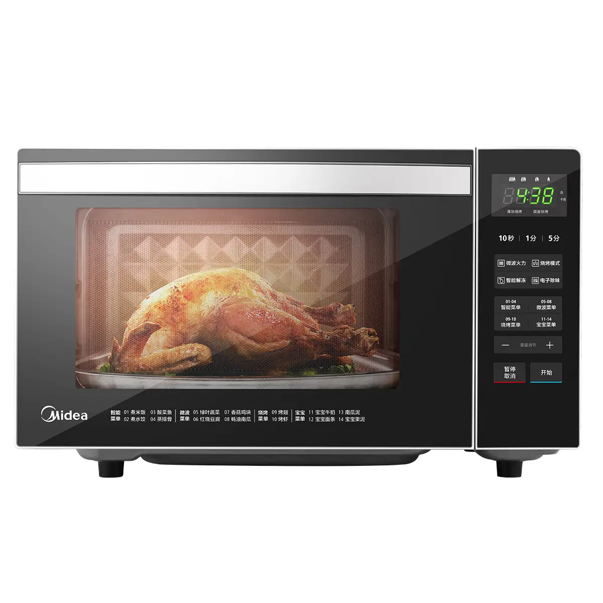 900W大火力,4档可调,快速烹饪随心调;两种烧烤模式:薄块烧烤+组合快烤;14款自动菜单,一键烹饪;1级能效,高效节能, 更省电;