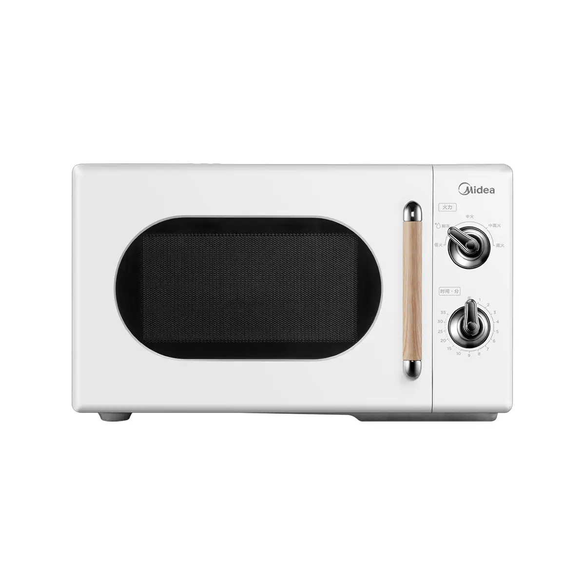 木质拉手触感细腻柔和;暖白色外观搭配弧形视窗,高透大视野;机械式双旋钮经典操控;五档火力轻松调节
