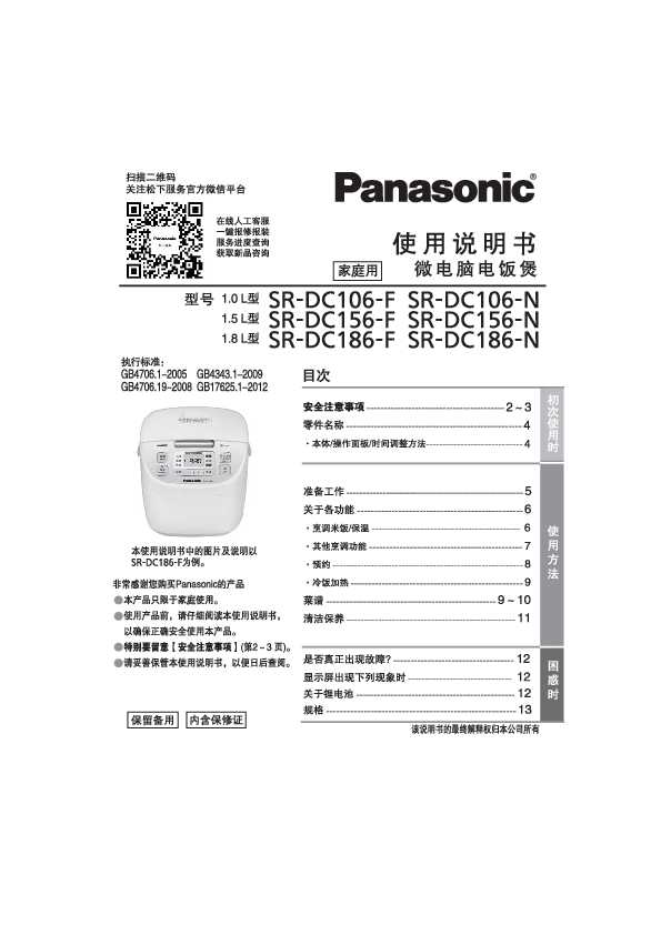 松下Panasonic 【电饭煲】SR-DC106/DC156/DC186使用说明书