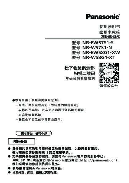 【电冰箱】NR-EW58G1使用说明书说明书下载