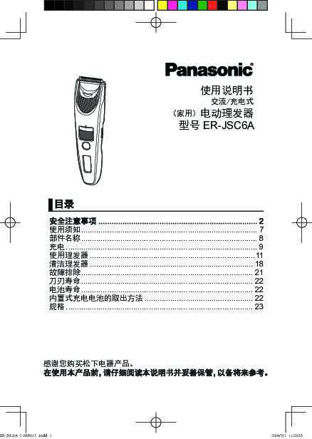 松下Panasonic 【理发器】ER-JSC6A使用说明书