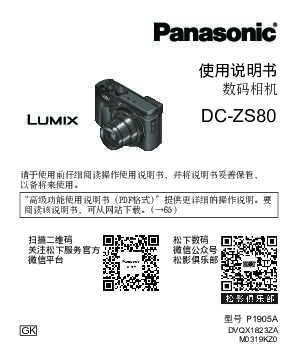松下Panasonic 【便携数码相机】DC-ZS80GK使用说明书