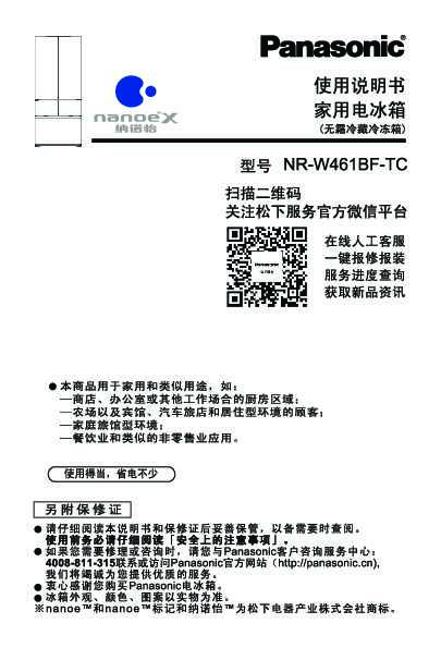 松下Panasonic 【冰箱】NR-W461BF 使用说明书