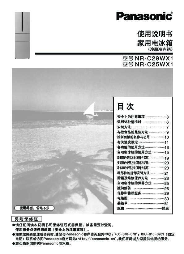 松下Panasonic NR-C29WX1-N 说明书