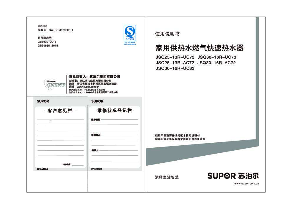 JSQ25-13R-AC72/JSQ30-16R-AC72/JSQ25-13R-UC73/JSQ30-16R-UC73/JSQ30-16R-UC83说明书下载