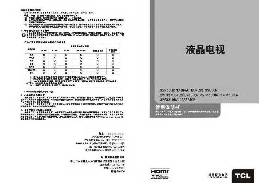 TCL L43F3310B 产品说明书 产品说明书